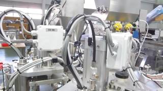 Автоматы изготавливаются с 8, 10 или12 позиционным транспортным ротором. Система управления автомата - электронная c PLC с диагностикой всех неисправностей автомата. В зависимости от вида продукта автоматы комплектуются различными видами и различным количеством дозаторов.